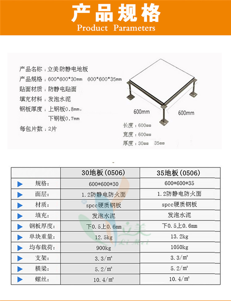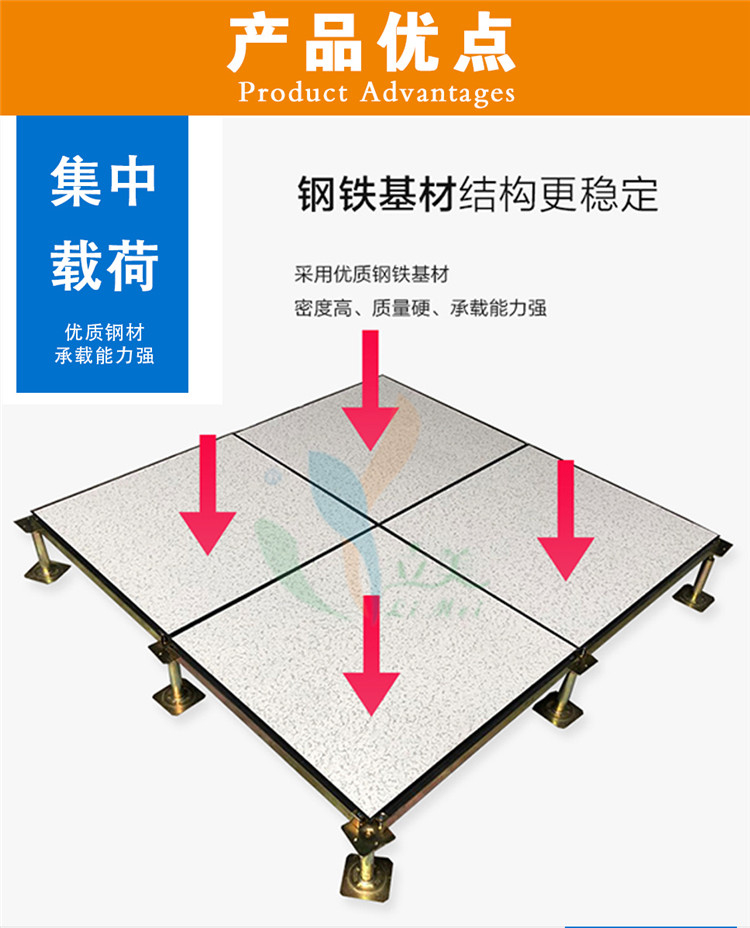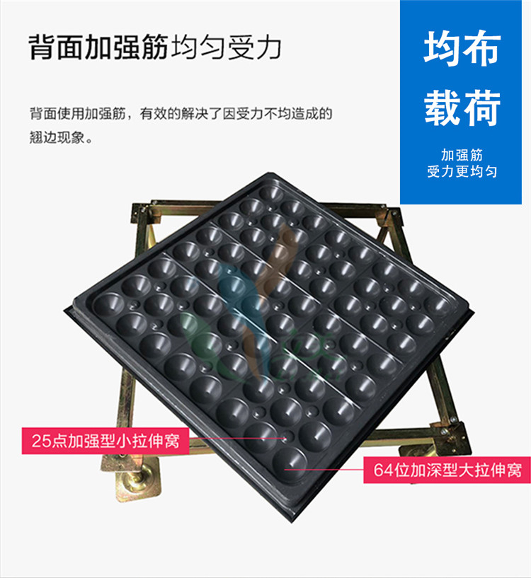 承载能力强:全钢结构赋予了地板较高的强度和刚性,均布载荷和集中载荷指标较高,如悦莱全钢防静电地板(重型)的均布荷载可达 33000N/㎡(约 3.3 吨 /㎡),集中荷载为 5560N(约 567kg),能稳定支撑重型设备,避免变形或塌陷。
