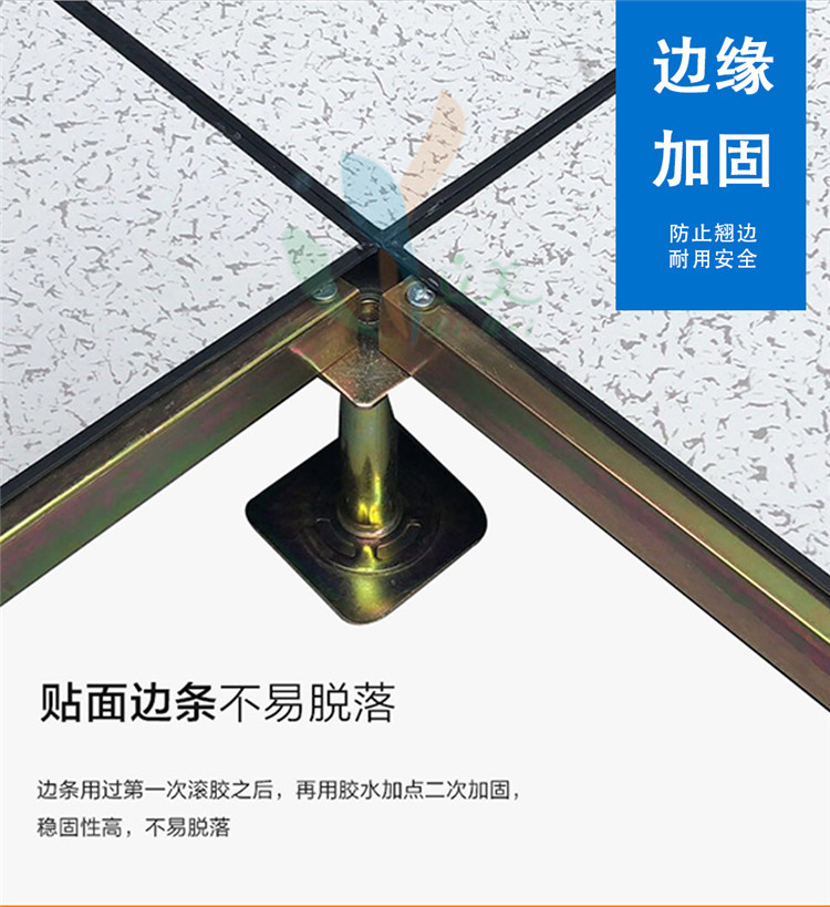 边框:分为有边型和无边型两种。有边型四周镶嵌导电边条,一般采用导电塑料材料制成,可提供良好的防静电保护;无边型则通过特殊工艺处理,如 HPL 贴面四周印刷黑边等,铺装后视觉上与有边地板相似