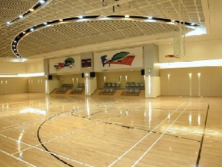 材质选用以枫木、柞木为主的结构,主要优点如下: 1、体育木地板硬度适中,经锤击试验印痕深度均小于其它硬木,同时由于不软不硬,令 人脚感舒适。 2、体育木地板木种是长纤维树种,具有其它硬木不可比拟的坚韧性,横纹、竖纹抗剪性 能均为,加工使用中不会产生木刺,可以保护运动员不受伤害。 3、体育木地板属于长纤维,密度沿地板块均匀排列,平均耐磨性好,使用寿命极长。 4、体育木地板材质密实均匀,无毛孔水管外露,不易吸潮变形,外观细腻光亮。 5、体育木地板色泽明快,天然色差视觉效果,适合比赛及电视转播的感观美。