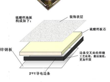 高密度硫酸钙地板是由原材料加工凝固成硫酸钙晶体,并采用无毒未经漂白的植物纤维作为加固材料经过一次脉冲压制工序制作而成.覆面采用HPL贴面或PVC贴面,地板四周塑胶收边条,地板底采用镀锌钢板。因其环保、防火、高强度、平整等多方面优势,已成为架空地板最为广泛使用的材料。在发达国家和地区用量非常大,成为设计师考虑的活动地板 硫酸钙地板广泛应用于各种防静电要求、承载要求、铺装效果要求很高档的场合,如银行。电信机房、智能办公室、高档机房、部队指挥中心、电力电子、微电子、医学程控机房、电力调度室等